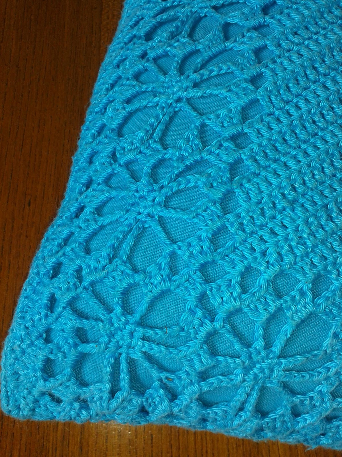 Voor schoonmoeder haakte ik een kussen. De kleur koos ze zelf. Het patroon komt uit een stokoud boekje van Durable (1977!) en was oorspronkelijk groen met oranje! In deze frisse kleur weer helemaal hip en heel makkelijk te maken